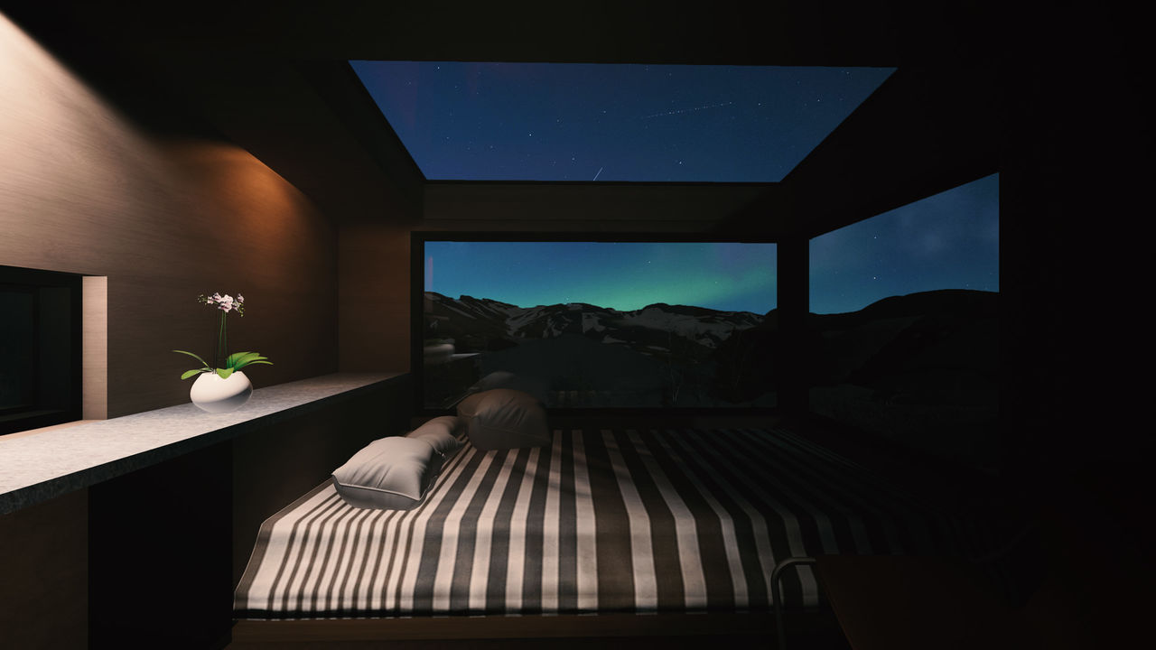 A large skylight was installed in order to enjoy the northern lights dancing in the sky.
