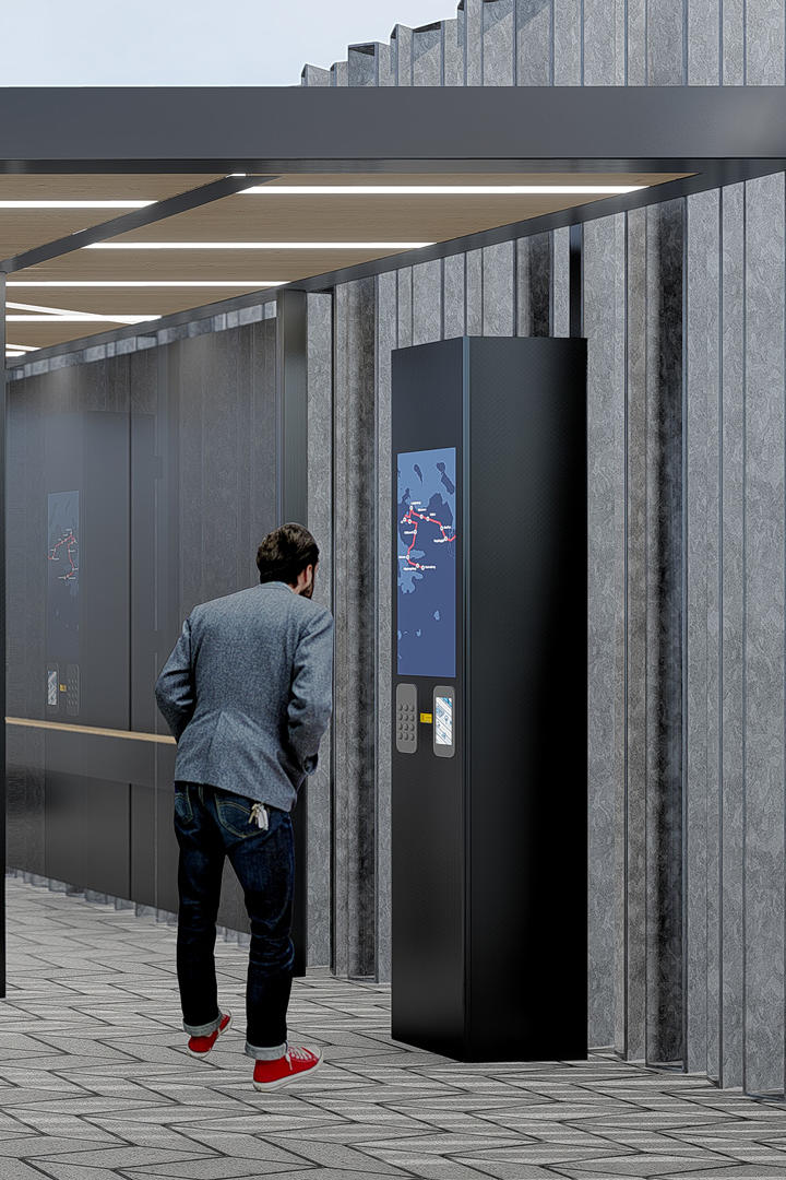 The interior consists of ash wood planks for the flooring, while birch plywood is used for the interior walls and furniture to create a warm interior. Together with a delicate lighting, the interior creates a contrast with the dark exterior.